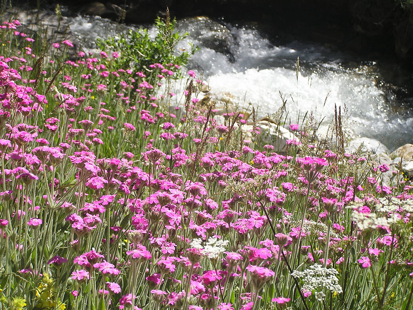 En juin, les fleurs ont gagné, elles prennent toute la place, et il y a des eaux vives partout.