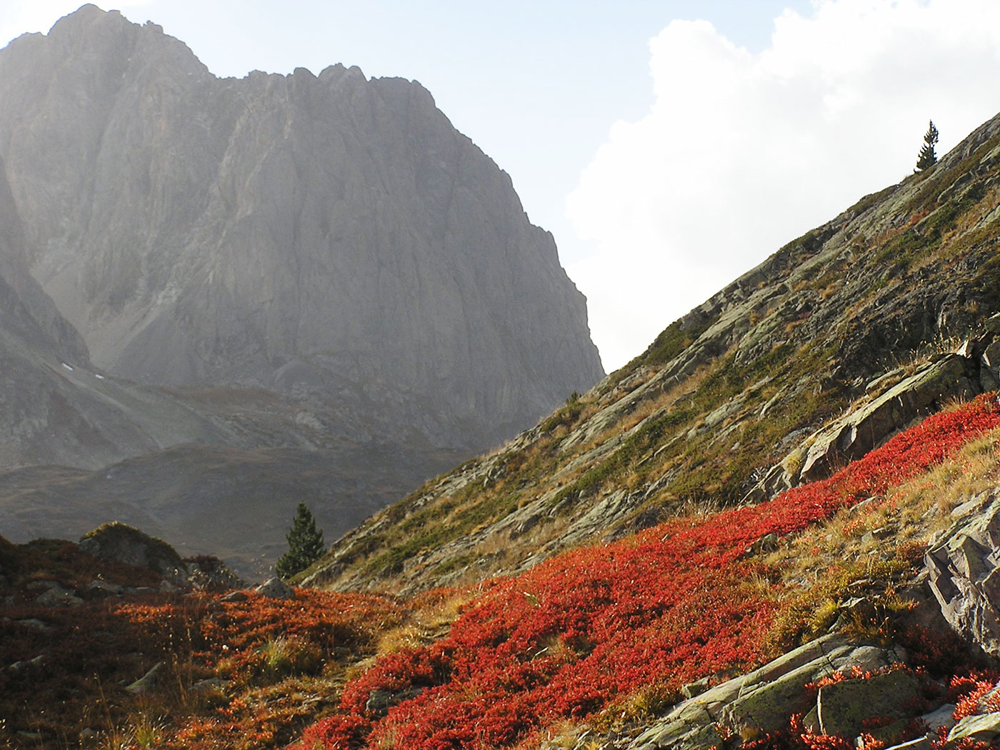 En octobre, les mélèzes rougissent et les sommets blanchissent…C’est beau !